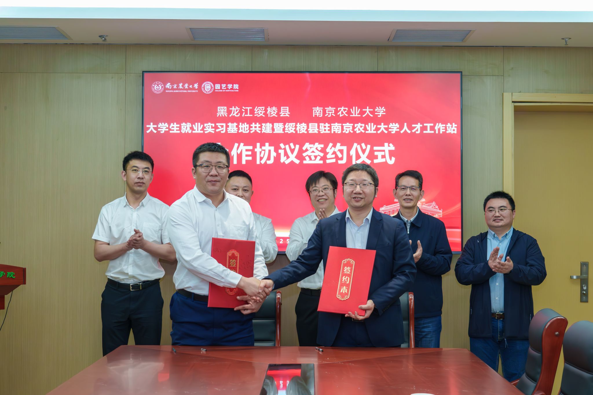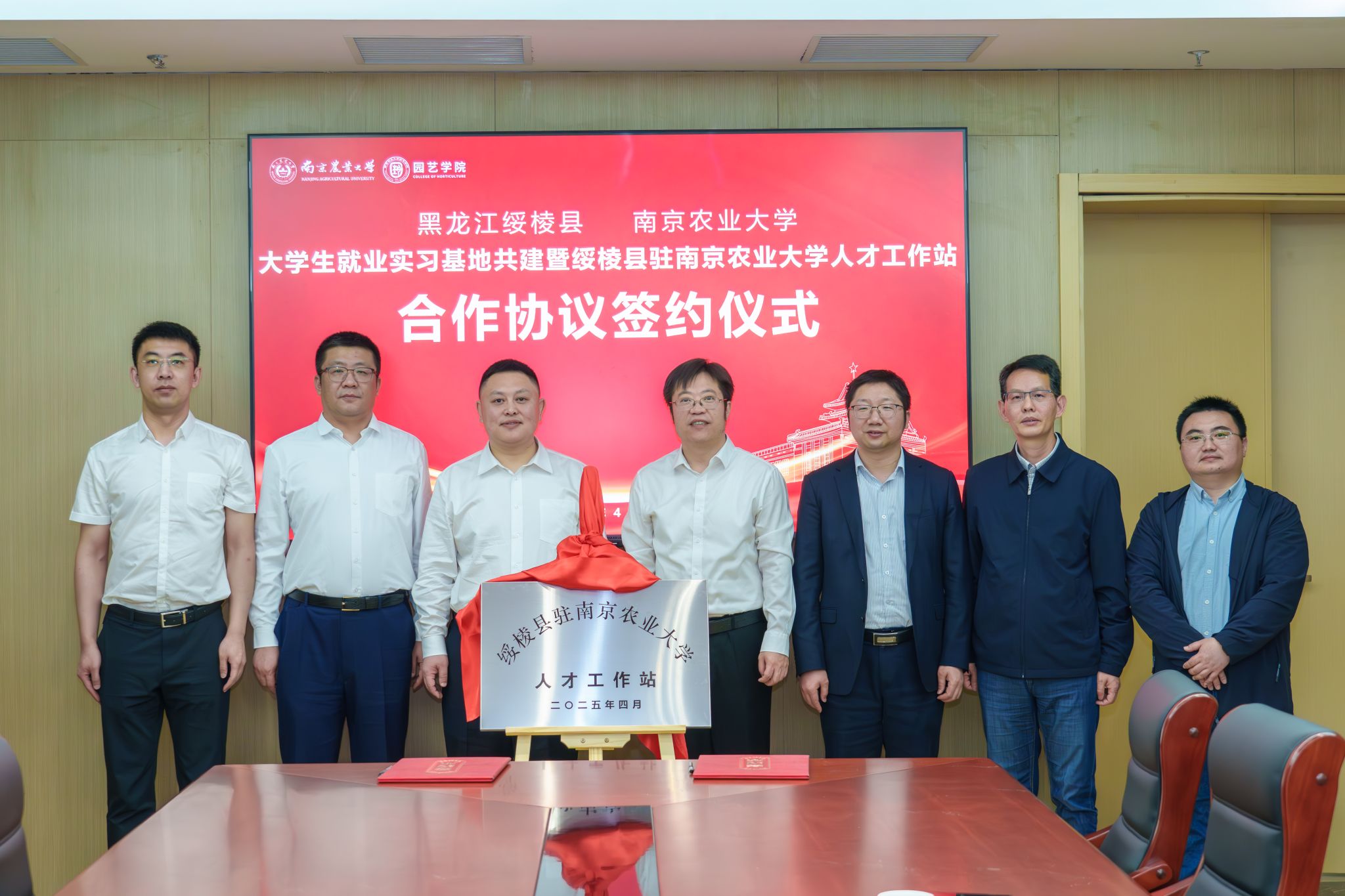 双方现场签订《大学生就业实习基地共建暨绥棱县驻南京农业大学人才工作站合作协议》,同时举行人才工作站授牌仪式,促进人才与产业“双向奔赴”。