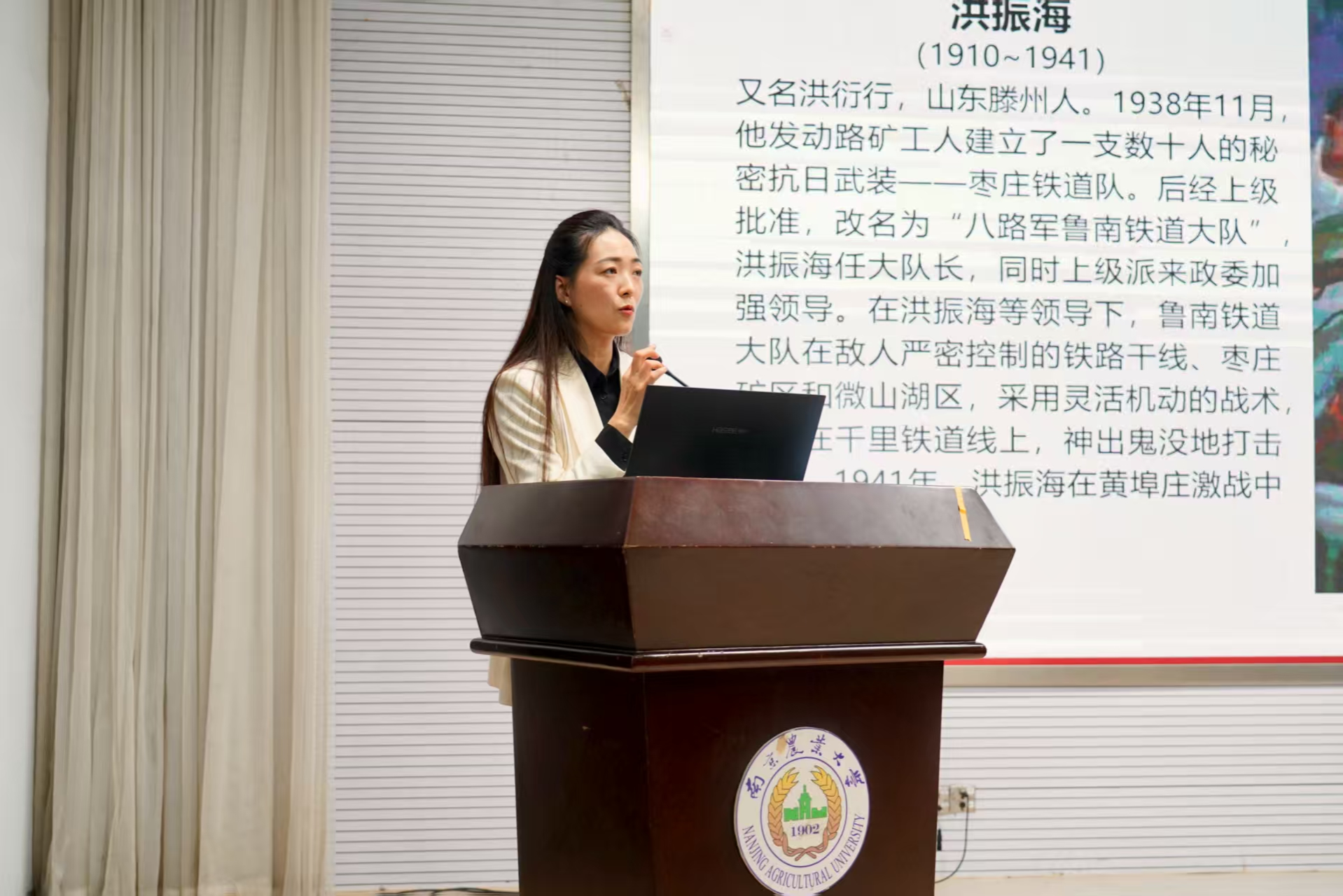 在园思讲堂环节,陈蕊为全体学员作《党旗所指心之所向——中国共产党党旗之路》专题讲座。她以《铁道游击队》为引,向同学们讲述了党旗的发展历程,指出了今日党旗并非建党之初就已确定,其形态的演变,与中国共产党由小到大、由弱到强的峥嵘奋斗历史紧紧相连,旗帜引领前进方向,旗帜凝聚奋斗力量。她寄语同学们记住“党旗所向,心之所向”,不忘初心、牢记使命,坚定理想信念,为实现中华民族伟大复兴的中国梦奉献青春力量。