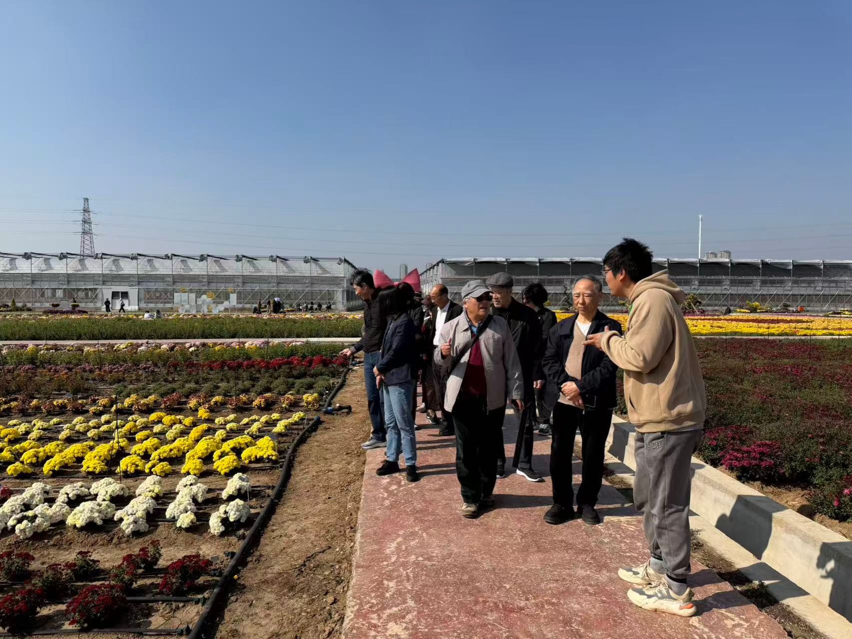 深秋时节,菊博园内千姿百态的菊花竞相绽放,老同志们精神矍铄,漫步于花海之间,时而驻足欣赏,时而拍照留念,对菊花丰富的品种、新颖的造型和先进的栽培技术赞不绝口。他们不仅是赏花的游客,更是行业的专家。在参观过程中,老同志们结合自己毕生所学的园艺专业知识,与园区技术人员就菊花的新品种选育、病虫害绿色防控、景观应用及深加工产业等内容进行了深入交流和探讨,提出了许多宝贵的建议,现场气氛热烈,其乐融融。
