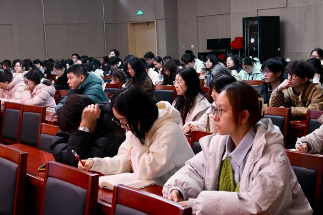 “园思讲堂”在滨江校区园艺楼142举办。校纪委监察处副处长李云锋受邀主讲,学院本科生辅导员蔡行楷、李佳欣与160余名入党积极分子参与本次学习。