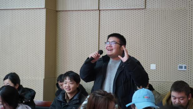 束浩渊主持座谈会,并就留校注意事项、假期校园安全、防诈骗等事宜作出提醒。他表示,学院始终是同学们的坚强后盾,将全力为同学们的成长发展排忧解难、保驾护航。